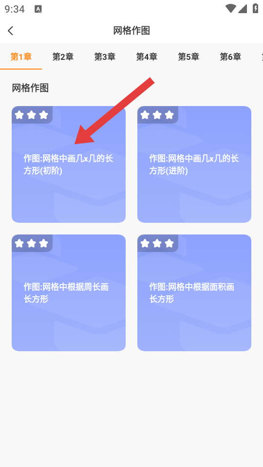 3、進(jìn)入課程章節(jié)界面后,選擇具體的學(xué)習(xí)內(nèi)容,比如【作圖-網(wǎng)格中畫幾x幾的長方形(初階)】。