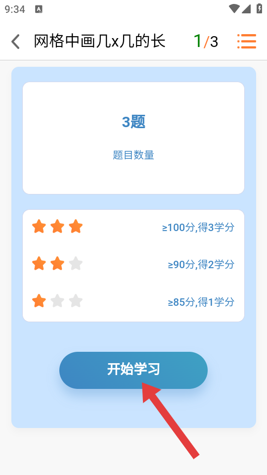 4、查看題目數(shù)量和得分規(guī)則后,點(diǎn)擊【開始學(xué)習(xí)】按鈕,開啟學(xué)習(xí)之旅。