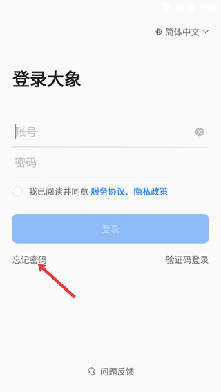 1、在【登錄大象】界面,點(diǎn)擊【忘記密碼】,進(jìn)入統(tǒng)一登錄中心的【驗(yàn)證手機(jī)號】頁面。