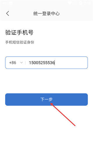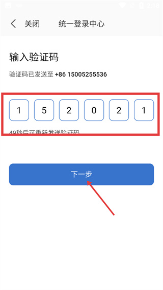3、輸入手機(jī)號后,點(diǎn)擊【下一步】,進(jìn)入【輸入驗(yàn)證碼】頁面。