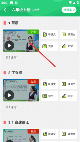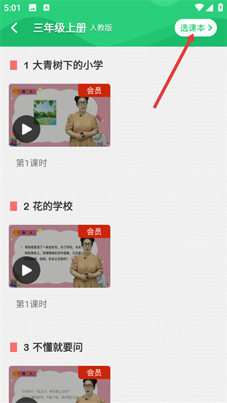 4、進入所選課本的課程列表頁面,點擊課程,即可開始學(xué)習(xí)對應(yīng)課時內(nèi)容。