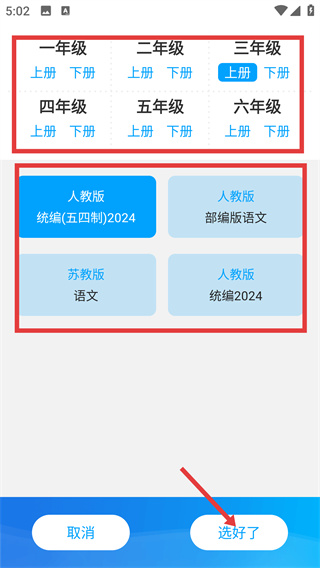 3、選擇對應(yīng)年級和教材版本后,點擊【選好了】,完成課本選擇。