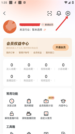 1、在蟬媽媽個人中心頁面點擊【設置齒輪】,進入設置界面。