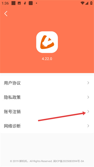 3、在關于我們頁面點擊【賬號注銷】,進入賬號注銷確認環(huán)節(jié)。