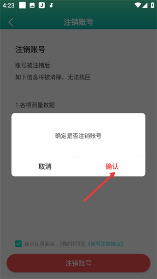 4、在確認(rèn)注銷彈窗中點(diǎn)擊“確認(rèn)”,完成賬號(hào)注銷操作。
