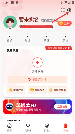 2、在【我的】頁面點(diǎn)擊右上角【設(shè)置】按鈕,進(jìn)入設(shè)置頁面。