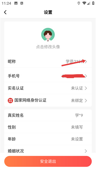 3、在【設(shè)置】頁面找到并點(diǎn)擊【昵稱】選項(xiàng),彈出【修改昵稱】的輸入彈窗,準(zhǔn)備輸入新的昵稱內(nèi)容。