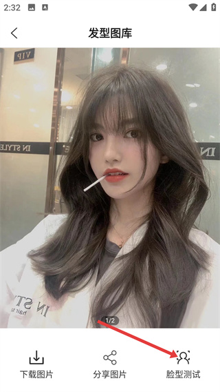 3、點擊目標(biāo)發(fā)型進入其詳情頁面,可查看發(fā)型細(xì)節(jié),點擊頁面底部的【臉型測試】功能。