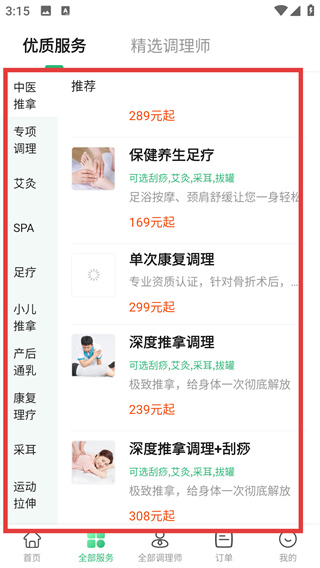 1、服務(wù)品類豐富多元,覆蓋中醫(yī)按摩、小兒推拿、康復(fù)理療等全場(chǎng)景健康需求,無論是日常放松還是針對(duì)性調(diào)理均能滿足。