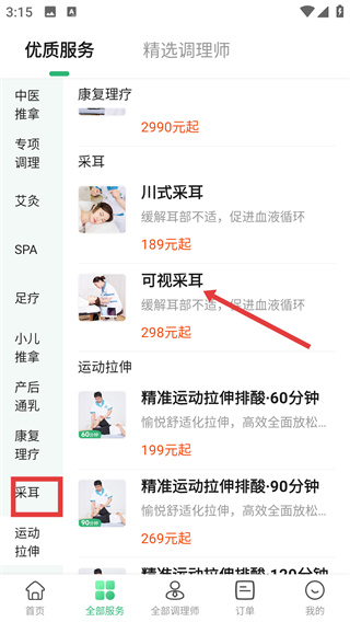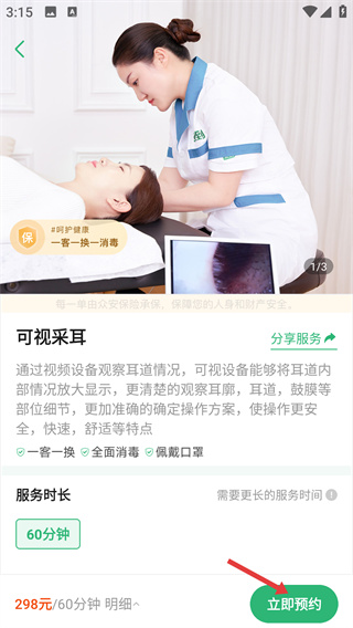 3、在采耳分類的服務(wù)列表中,點(diǎn)擊目標(biāo)服務(wù)(如“可視采耳”),進(jìn)入該服務(wù)的詳情頁面,查看服務(wù)介紹、時(shí)長等信息。