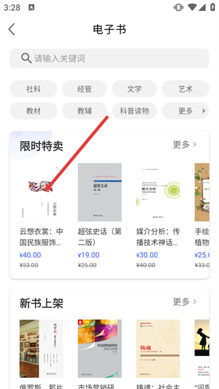 3、在電子書(shū)頁(yè)面的限時(shí)特賣(mài)板塊,點(diǎn)擊目標(biāo)書(shū)籍,進(jìn)入該書(shū)的詳情頁(yè)面。