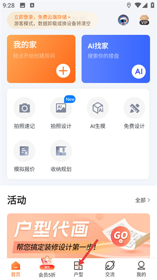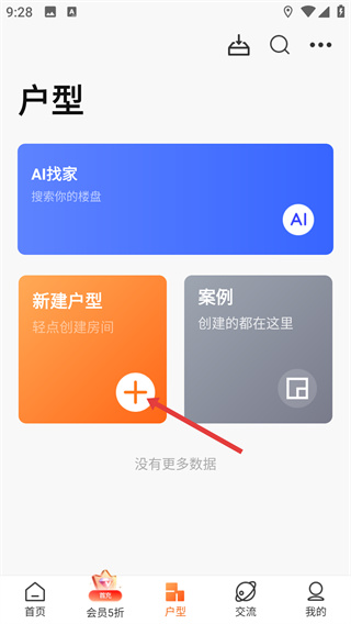 1、在首頁底部導(dǎo)航欄點擊【戶型】選項,進(jìn)入戶型管理頁面,可進(jìn)行戶型創(chuàng)建與管理相關(guān)操作。