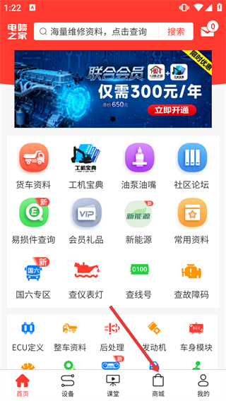 1、在電噴之家首頁(yè)底部功能欄,點(diǎn)擊“商城”選項(xiàng),進(jìn)入商品列表頁(yè)面。