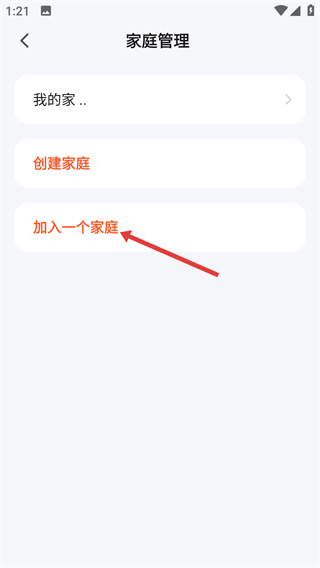 3、在家庭管理頁(yè)面,選擇【加入一個(gè)家庭】選項(xiàng),進(jìn)入對(duì)應(yīng)的加入流程界面。