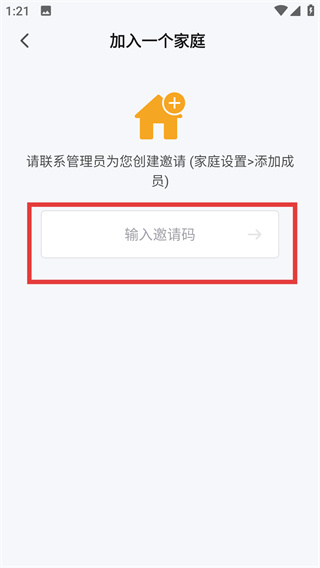 4、在加入一個(gè)家庭的頁(yè)面,向管理員獲取邀請(qǐng)碼后,在【輸入邀請(qǐng)碼】框中填寫該邀請(qǐng)碼,完成家庭加入的操作。