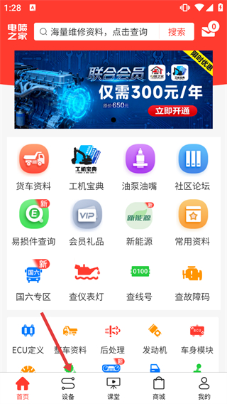 1、在電噴之家首頁底部功能欄,點擊“設(shè)備”選項,進入“我的設(shè)備”管理頁面。該頁面用于管理維修相關(guān)的設(shè)備及傳感器模塊。