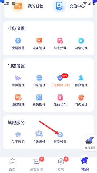 2、進入【我的】頁面后,在【其他服務】板塊找到【賬號設置】選項,點擊該選項進入對應的設置界面。