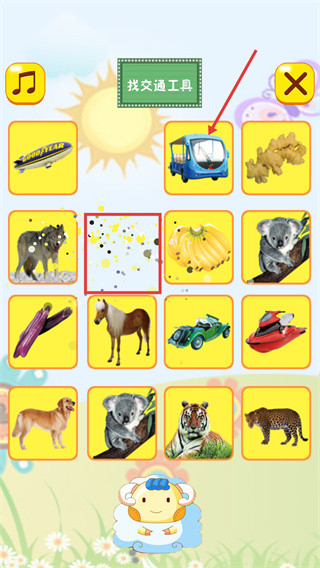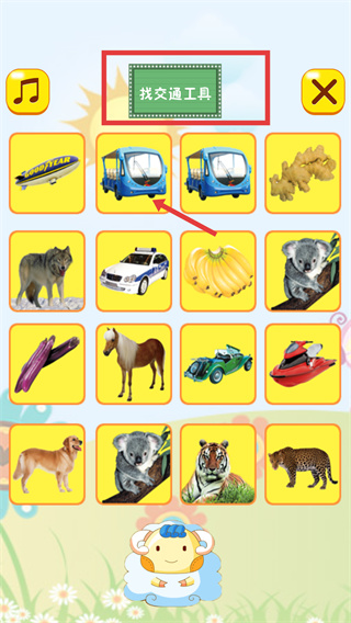 2、進入“找交通工具”游戲頁后,根據(jù)任務(wù)要求,選擇頁面中的交通工具(如藍色巴士),完成該選項的匹配。