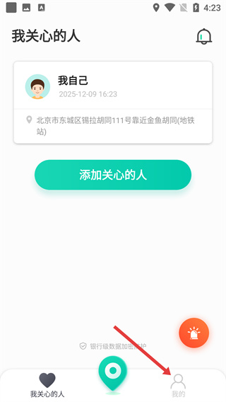 1、進(jìn)入【我關(guān)心的人】頁面,點(diǎn)擊底部【我的】按鈕,進(jìn)入個人功能頁面。