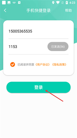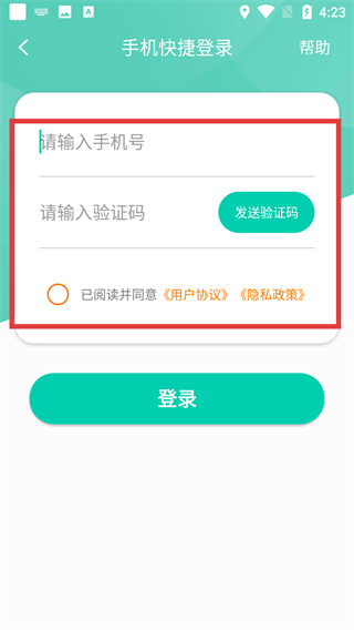 3、進(jìn)入【手機(jī)快捷登錄】頁面,先填寫手機(jī)號,點(diǎn)擊【發(fā)送驗(yàn)證碼】,再勾選【已閱讀并同意《用戶協(xié)議》《隱私政策》】。