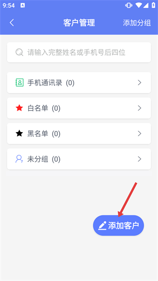 3、在客戶管理頁面,點擊“添加客戶”按鈕,進(jìn)入新建客戶的信息填寫頁面。