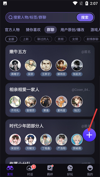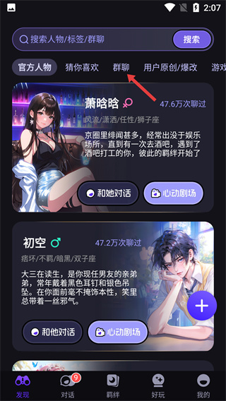 2、支持虛擬角色群聊互動功能,可邀小說動漫角色入群,適配磕CP等場景,解鎖趣味玩法。