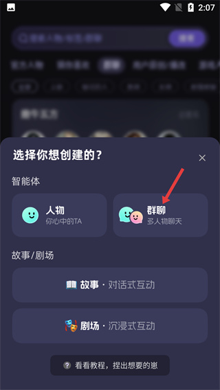 3、在創(chuàng)建選擇彈窗中,點擊【群聊】選項,可進入群聊的專屬創(chuàng)建流程。