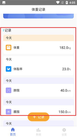4、保存完成后返回體重記錄頁,可查看已記錄的身體數(shù)據(jù)。