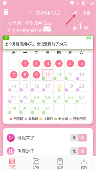 1、在經(jīng)期日歷頁,點(diǎn)擊右上角下載按鈕,進(jìn)入數(shù)據(jù)下載相關(guān)操作頁面。