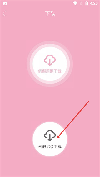 2、進(jìn)入下載頁后,選擇【例假記錄下載】選項(xiàng),跳轉(zhuǎn)至【導(dǎo)出Excel】頁面,準(zhǔn)備生成周期數(shù)據(jù)文件。