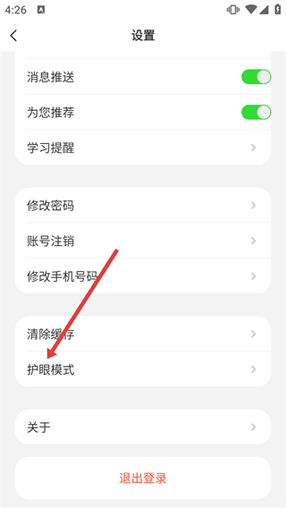 3、在設置界面中,選擇【護眼模式】選項,進入對應的功能配置頁面,準備調(diào)整護眼相關(guān)設置。