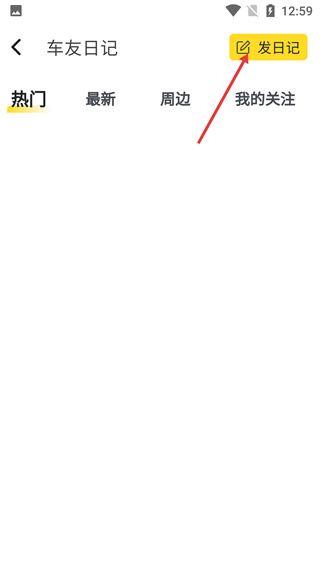 1、在首頁功能區(qū)找到【車友日記】選項并點擊,進(jìn)入車友日記的內(nèi)容頁面,可查看相關(guān)日記內(nèi)容。