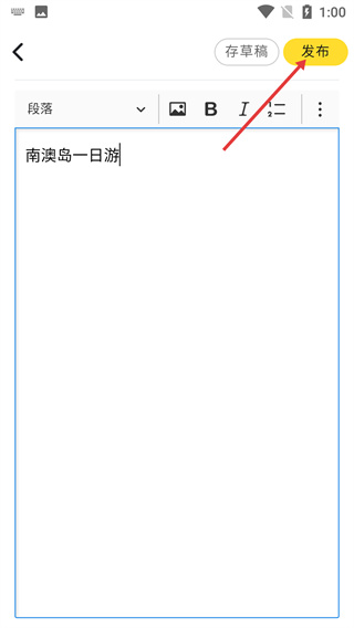 4、填寫好內(nèi)容后,點擊右上角的【發(fā)布】按鈕,完成該篇車友日記的發(fā)布操作。