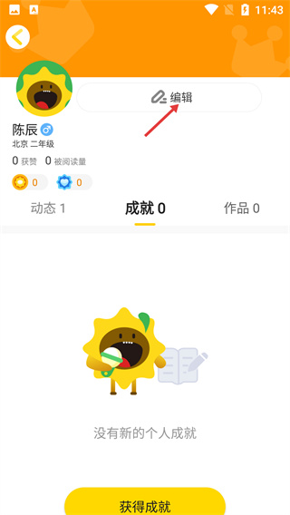 2、進(jìn)入個(gè)人主頁后,點(diǎn)擊“編輯”按鈕,跳轉(zhuǎn)至個(gè)人信息頁面,可管理姓名、學(xué)校等個(gè)人資料。