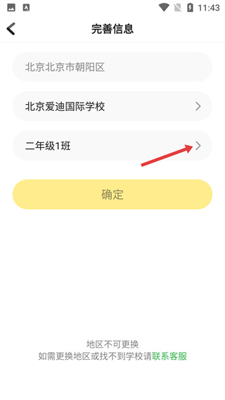 4、進(jìn)入完善信息頁面后,點(diǎn)擊“二年級(jí)1班”對(duì)應(yīng)的選項(xiàng),即可修改年級(jí)信息,完成后可保存設(shè)置。