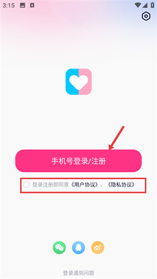 1、進(jìn)行賬號(hào)登錄前,需先勾選【用戶協(xié)議】、【隱私協(xié)議】的確認(rèn)框,再點(diǎn)擊【手機(jī)號(hào)登錄/注冊(cè)】按鈕進(jìn)入下一步操作。