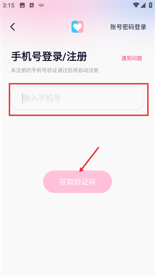 2、進(jìn)入手機(jī)號(hào)填寫(xiě)界面后,在【輸入手機(jī)號(hào)】的輸入框中填寫(xiě)對(duì)應(yīng)號(hào)碼,再點(diǎn)擊【獲取驗(yàn)證碼】按鈕來(lái)獲取驗(yàn)證信息。