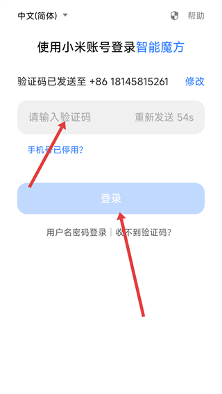 4、在【請(qǐng)輸入驗(yàn)證碼】輸入框中填寫收到的驗(yàn)證碼,點(diǎn)擊【登錄】完成智能魔方的賬號(hào)登錄。