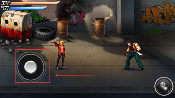 2、利用左側(cè)的【移動(dòng)輪盤(pán)】控制角色位移,調(diào)整與持械敵人的距離,同時(shí)觀察【生命-氣力】條的狀態(tài)。