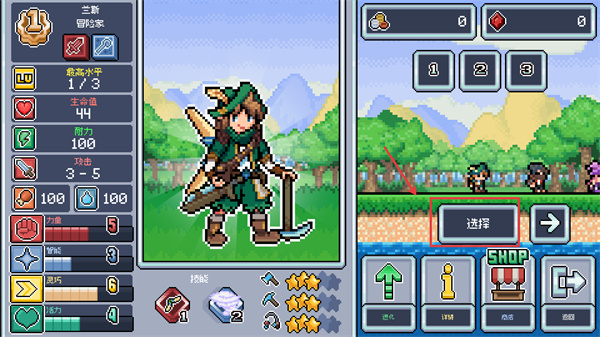1、查看角色面板了解【裝備水平】等屬性,點(diǎn)擊右側(cè)【選擇】按鈕確認(rèn)配置,為探索場(chǎng)景做準(zhǔn)備。