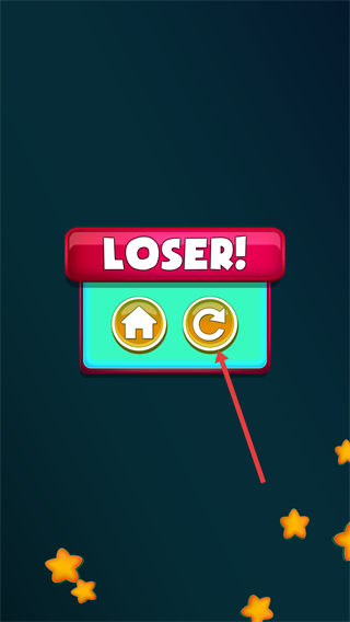 4、游戲失敗出現(xiàn)【LOSER!】提示時,點(diǎn)擊右側(cè)的重玩按鈕,重新開始游戲挑戰(zhàn)。