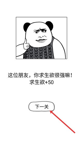 4、通關(guān)后點(diǎn)擊【下一關(guān)】按鈕,繼續(xù)挑戰(zhàn)后續(xù)關(guān)卡,提升求生欲指數(shù)。