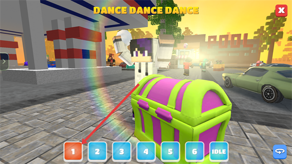 2、出現(xiàn)【DANCE-DANCE-DANCE】界面時,可按下方1-6數(shù)字按鈕操作,配合【IDLE】選項,完成互動以獲取【寶箱】類獎勵。