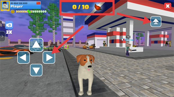 4、界面顯示任務進度【0/10】,搭配方向控制按鈕,可操控角色移動,推進該收集類任務的進度,完成對應的目標要求。