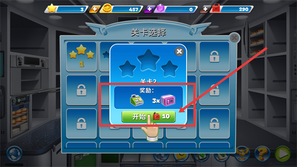 2、在關(guān)卡選擇界面,選定目標(biāo)關(guān)卡后,確認(rèn)其獎(jiǎng)勵(lì)(如【3x】),消耗指定資源(如【40】)并點(diǎn)擊【開始】按鈕,即可進(jìn)入對(duì)應(yīng)關(guān)卡參與任務(wù)。