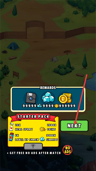4、完成當(dāng)前環(huán)節(jié)后,會(huì)獲得包含道具、寶石、金幣的【REWARDS】獎(jiǎng)勵(lì),點(diǎn)擊【NEXT】按鈕,即可進(jìn)入下一個(gè)游戲環(huán)節(jié)。