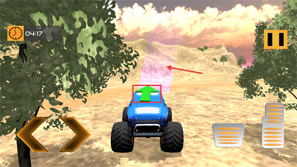 2、駕駛時通過【左右箭頭】控制車輛轉(zhuǎn)向,借助【油門-剎車鍵】調(diào)整車速,適應(yīng)越野地形的顛簸節(jié)奏。