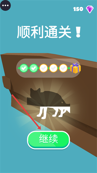 4、通關(guān)后可獲得【150】鉆石與獎(jiǎng)勵(lì),點(diǎn)擊【繼續(xù)】按鈕進(jìn)入下一關(guān),積累資源解鎖更多內(nèi)容。