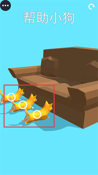 2、當(dāng)靠近【沙發(fā)】類(lèi)障礙物時(shí),先引導(dǎo)被框選的小狗登上障礙,再帶領(lǐng)其他小狗依次跟進(jìn)。