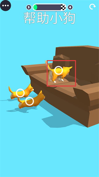 3、遇到多層障礙地形,要讓小狗逐個(gè)通過(guò)【臺(tái)階】區(qū)域,保持小狗的領(lǐng)先位置避免脫節(jié)。